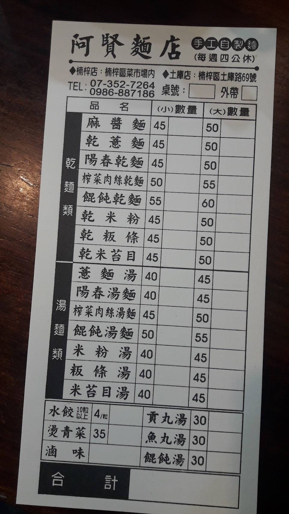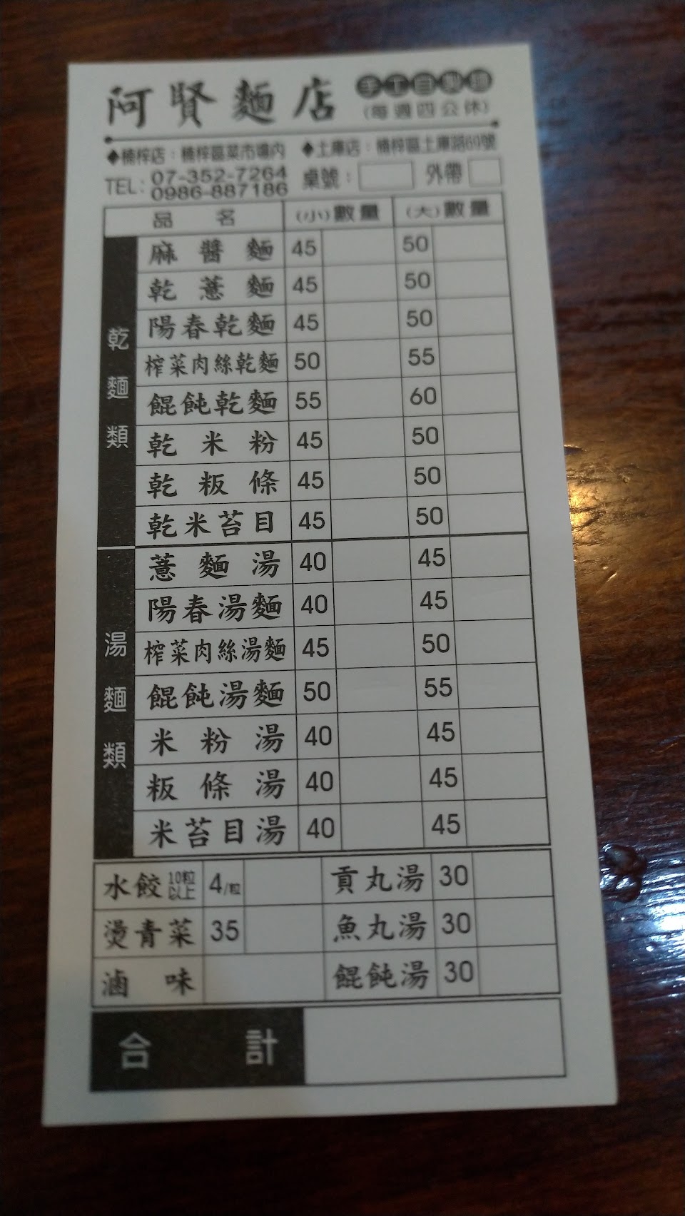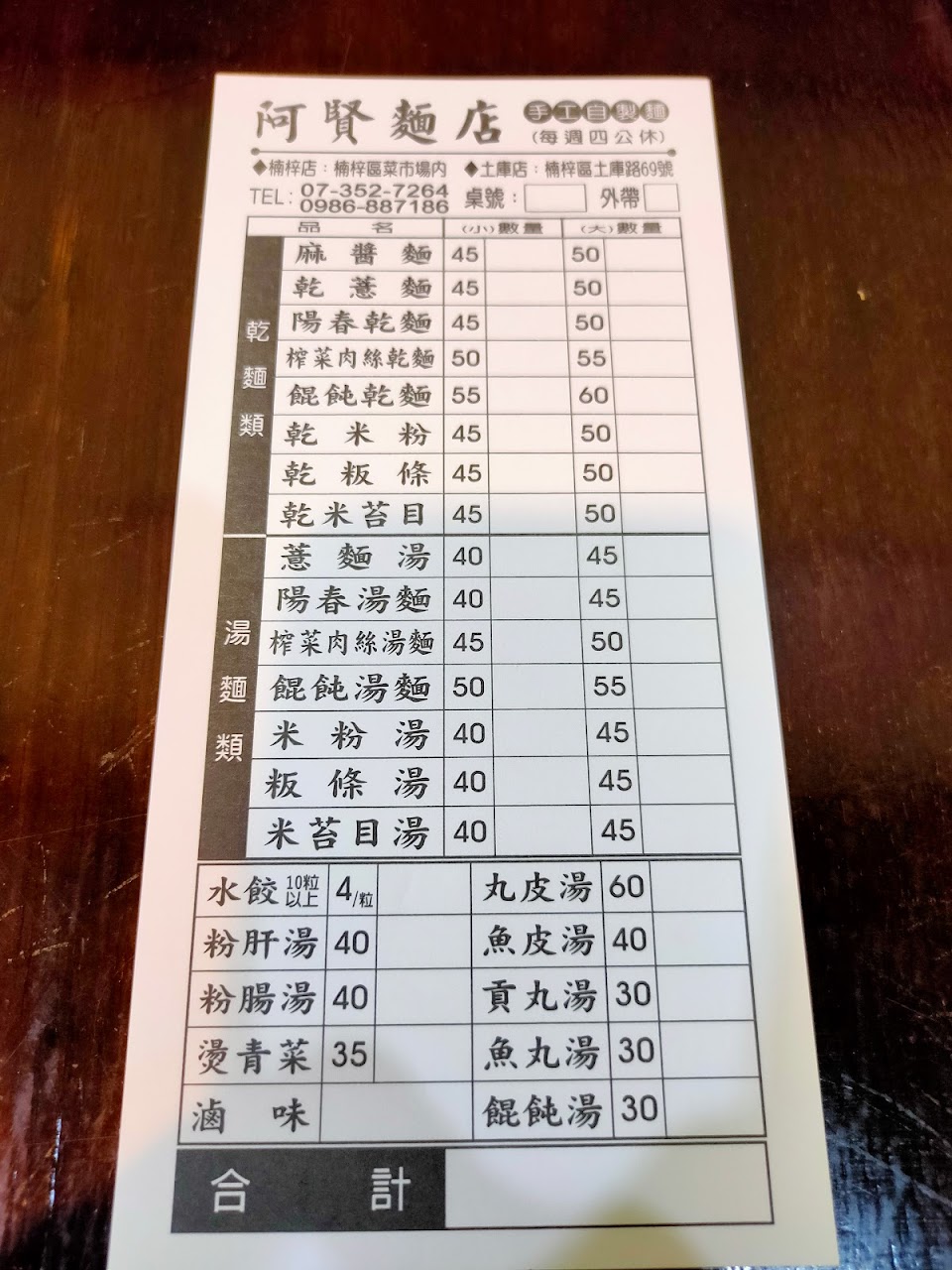 2024最新在地推薦餐廳的菜單_阿賢麵店的菜單、圖片