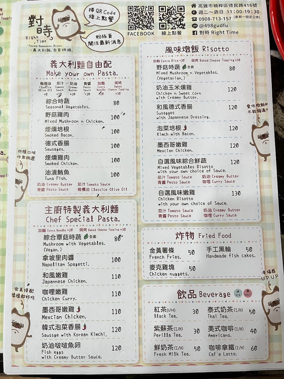 2024最新在地推薦餐廳的菜單_對時義大利麵、自家烘焙的菜單、圖片