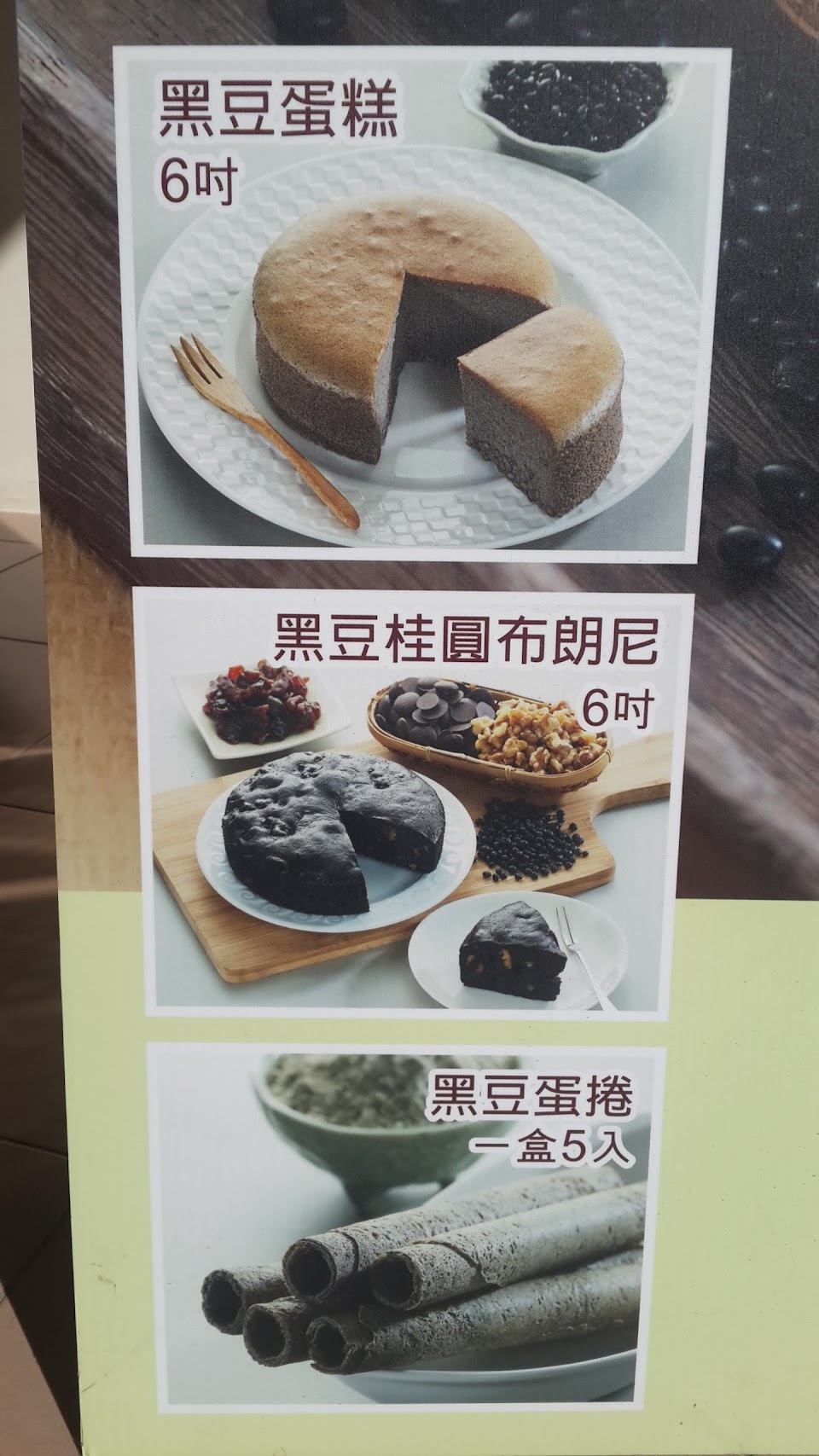 以米類、豆類為主之烘焙的蛋糕,口味種類不似一般蛋糕多,同大小尺吋而言,價格較高。開發本土產品實屬不易,給予鼓勵。
