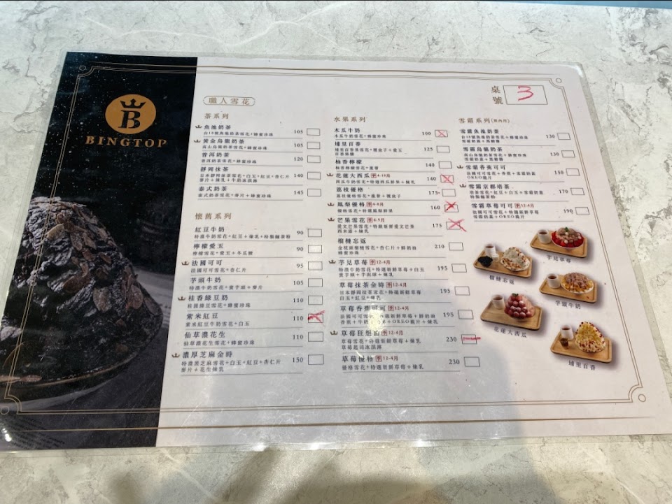 再來放雪花冰在我們桌上 右手邊就已經都放滿了 我們左手邊也是有位置可以走過來 就不走 喬好位置後 說了他們放回餐盤的流程 口氣也沒有很好 一整個開心來店裡用餐的心情都沒有了