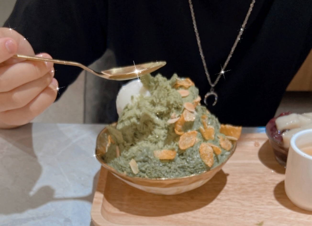 今天終於吃到抹茶雪花冰了😆😆 好吃👍 …