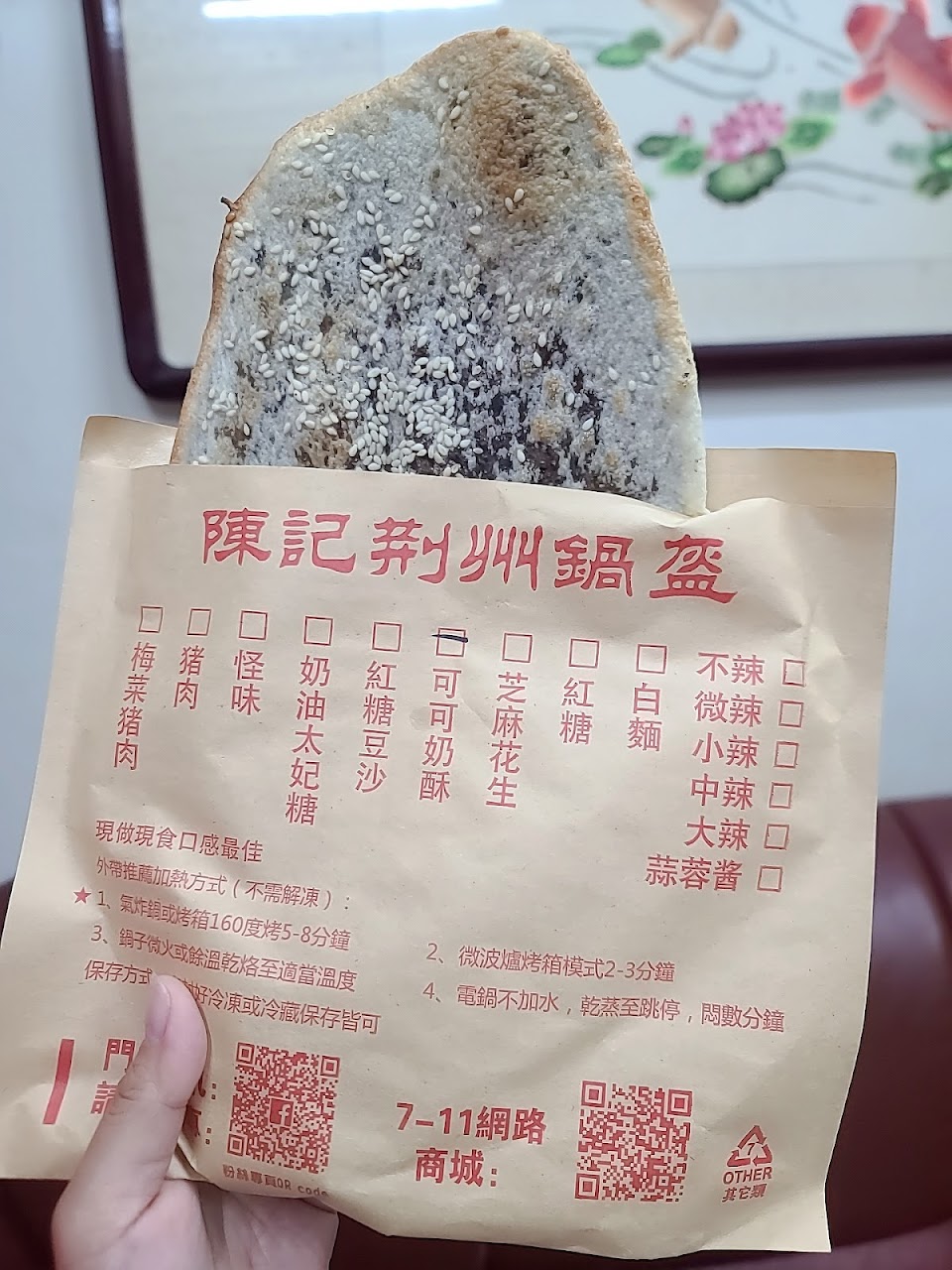 鍋盔餅的調味還不錯,怪味做的相當的道地,太妃奶油口味有牛奶糖的感覺也好吃,餅吃起來很酥脆