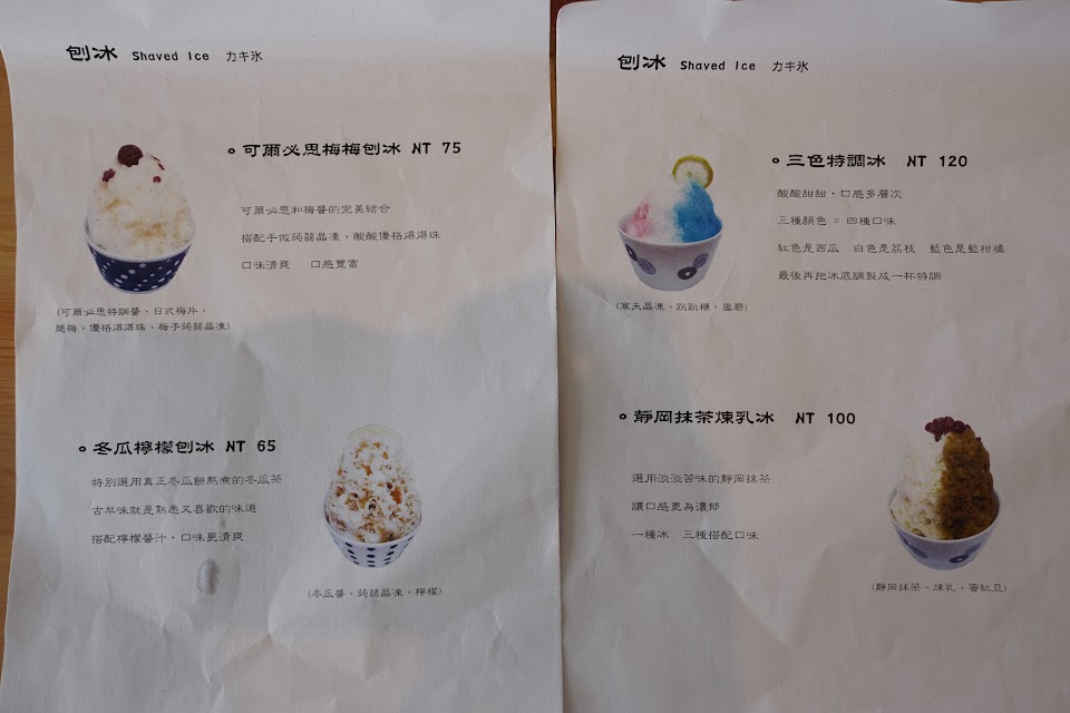 跟傳統的冰店不同,店家是偏日式精緻的冰品甜品風格,冰品各品項內的配料都是固定的,與傳統冰店自選配料不同