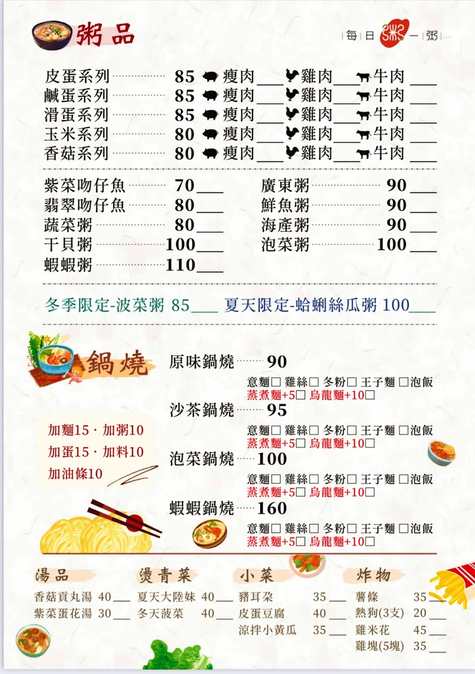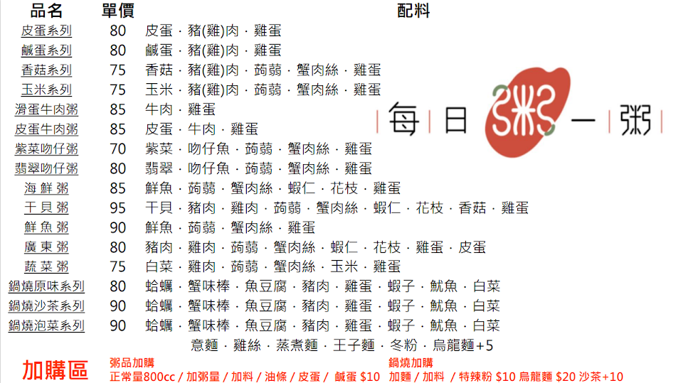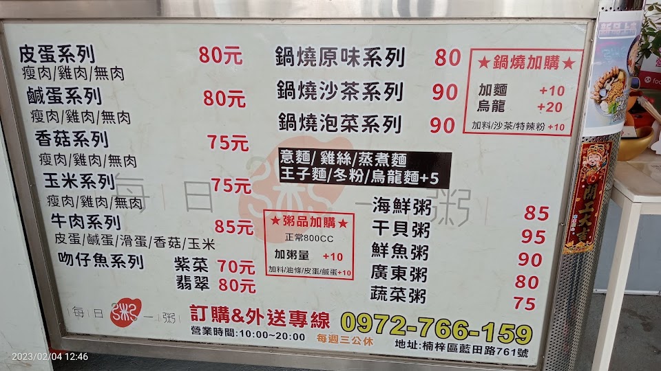 2024最新在地推薦餐廳的菜單_每日一粥鍋燒專賣的菜單、圖片