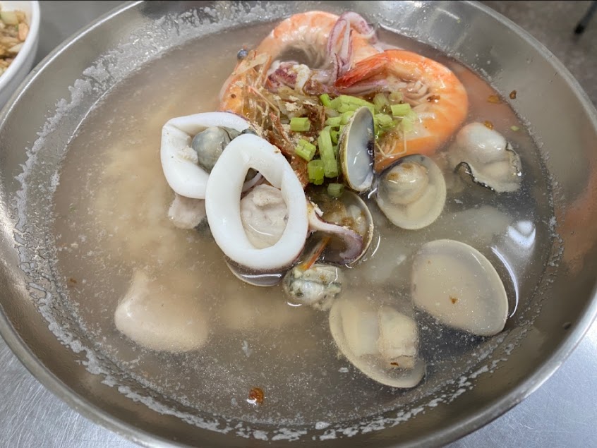 炒飯很好吃,蝦子新鮮個頭大。海鮮粥能分成飯分開煮還是一起煮,湯頭很甘甜,口味重的人可能需要自己再調味。米粉湯也好吃。蚵仔蛋裡面的蚵仔很大,很新鮮。海鮮粥裡面的料多,鮮度也很好,愛吃海鮮的小孩讚不絕口。