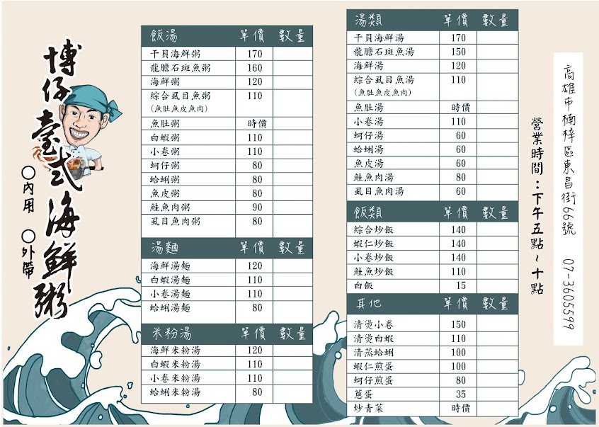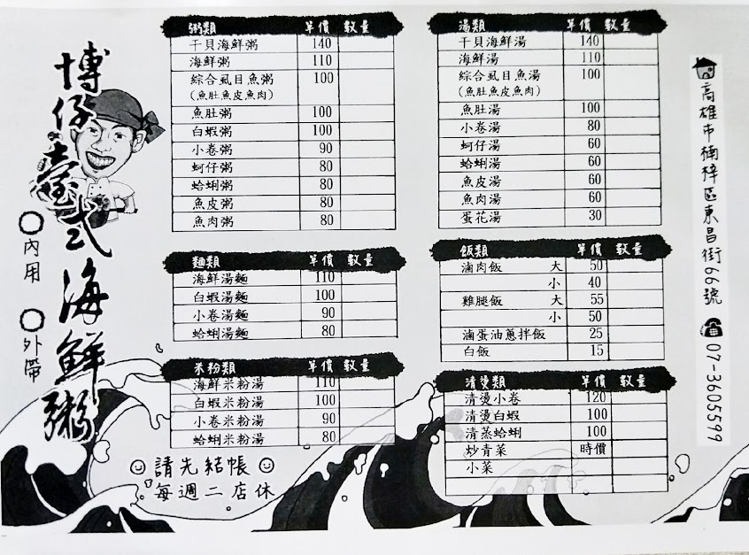 2024最新在地推薦餐廳的菜單_博仔台式海鮮粥的菜單、圖片