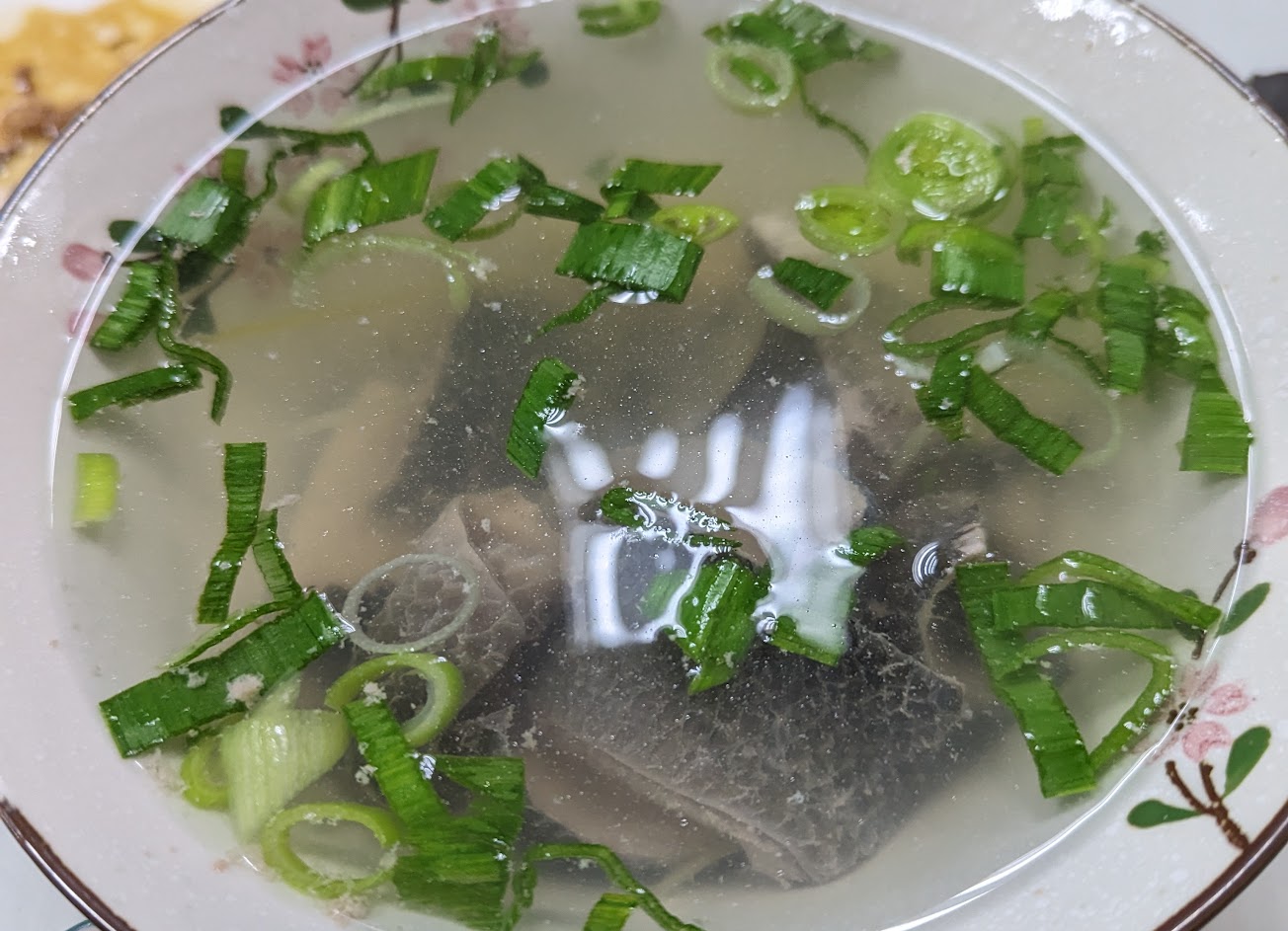 點鱸魚湯跟魚皮湯,沒有過多的調味,加了薑絲跟蒜苗,湯頭很清爽又很提味。而且還有放蛤蜊,味道很鮮美。推!