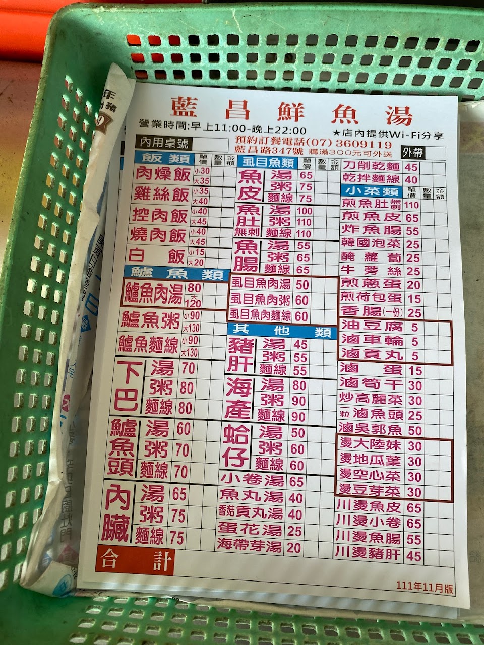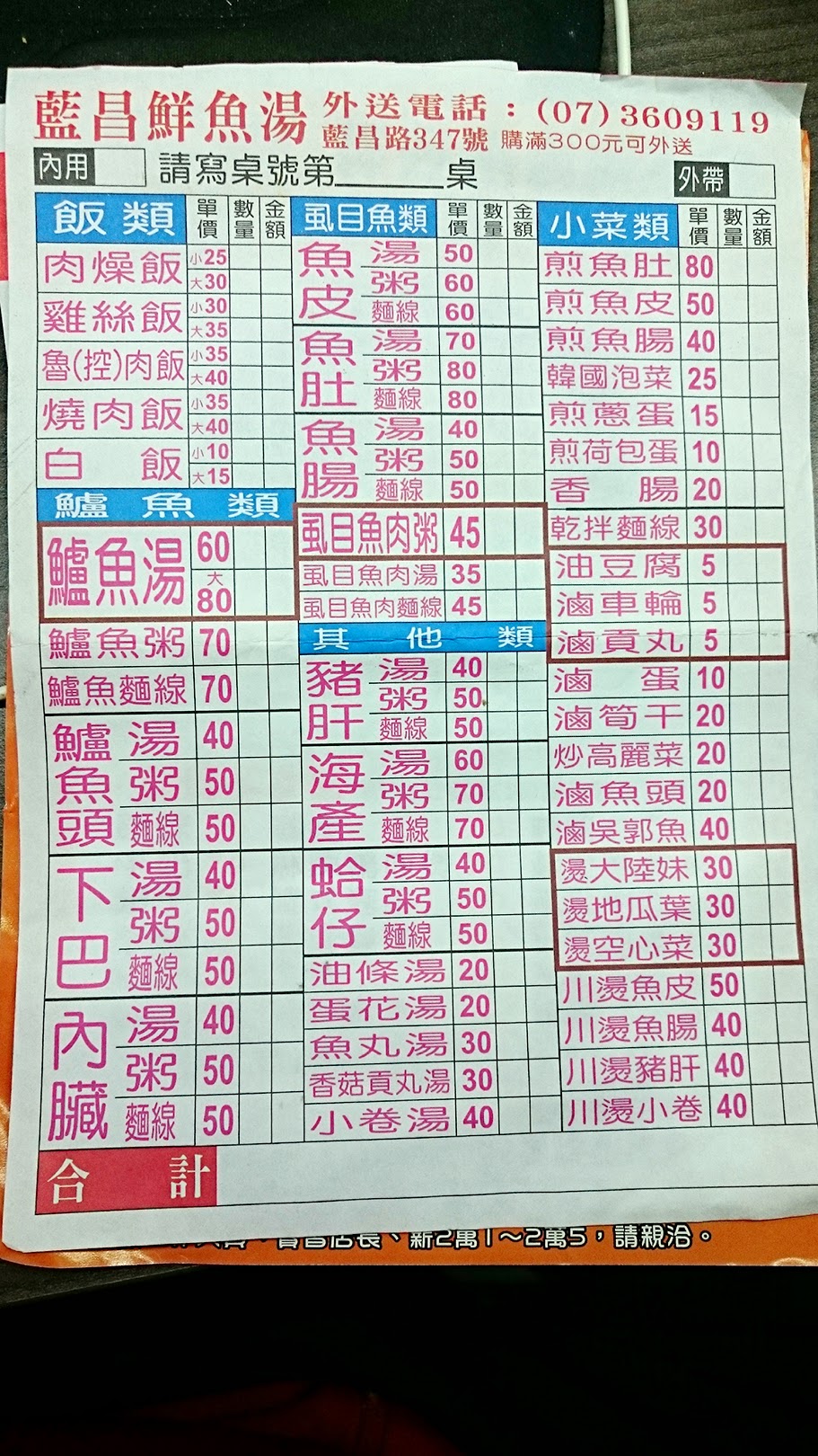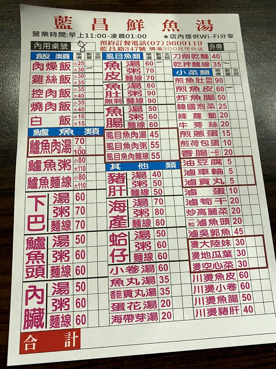 2024最新在地推薦餐廳的菜單_藍昌鮮魚湯的菜單、圖片