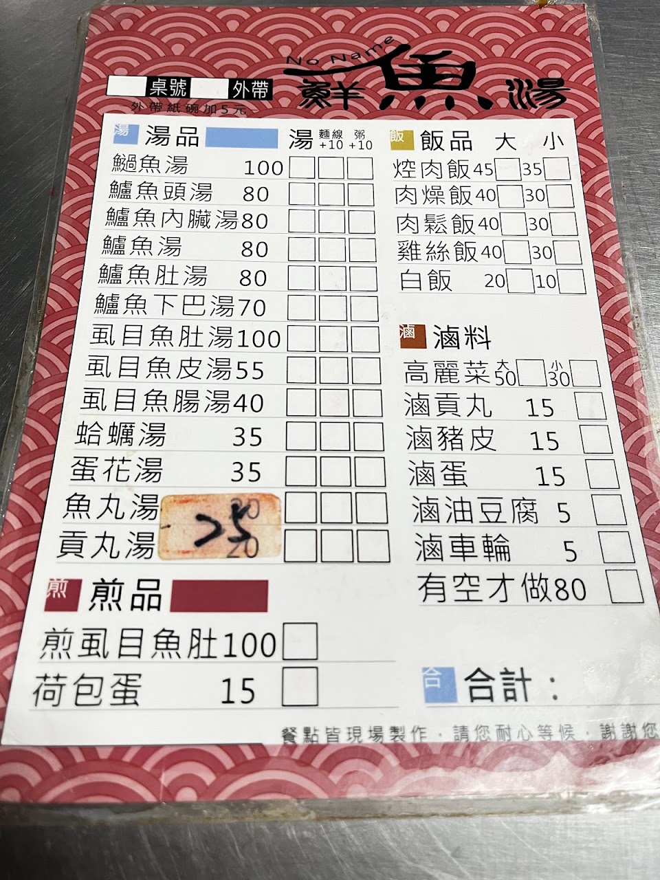 2024最新在地推薦餐廳的菜單_無名鮮魚湯的菜單、圖片