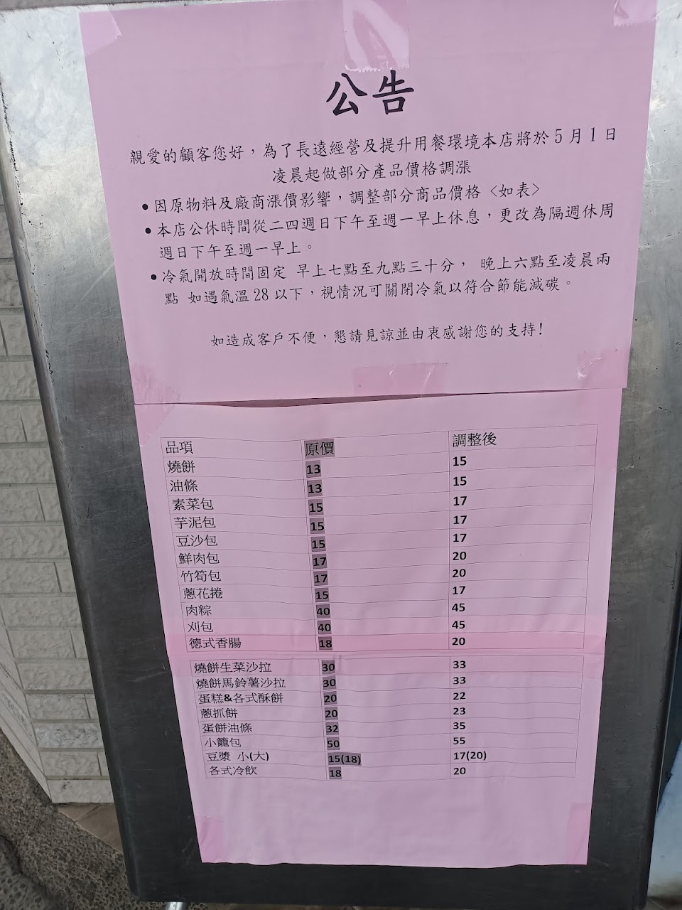 這是一間在地附近的中式早餐與宵夜連鎖店,地理位置方便,餐飲品質中規中矩。
