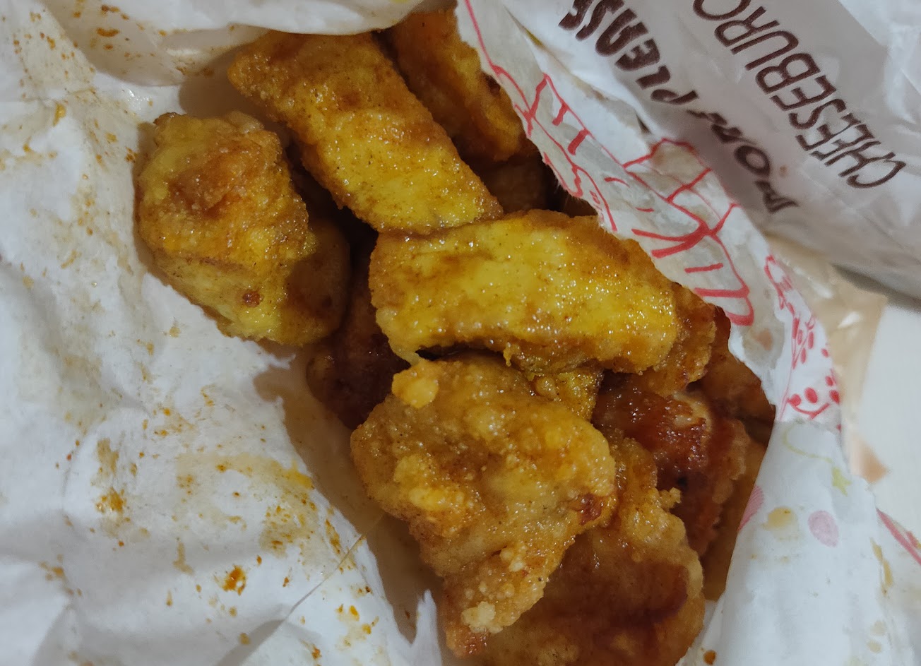 這六樣餐點我一個人吃完也不會覺得油膩(袋子很油? 吃炸的渣渣時也是一口油耗味–›活該)
