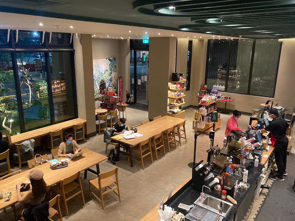 座落於大學南路附近的星巴克,外觀是以清水模的簡約造型組合而成,身為清水模控,勢必要帶一本大師的自傳搭配來參訪,非常適合耍廢和商業洽談!
