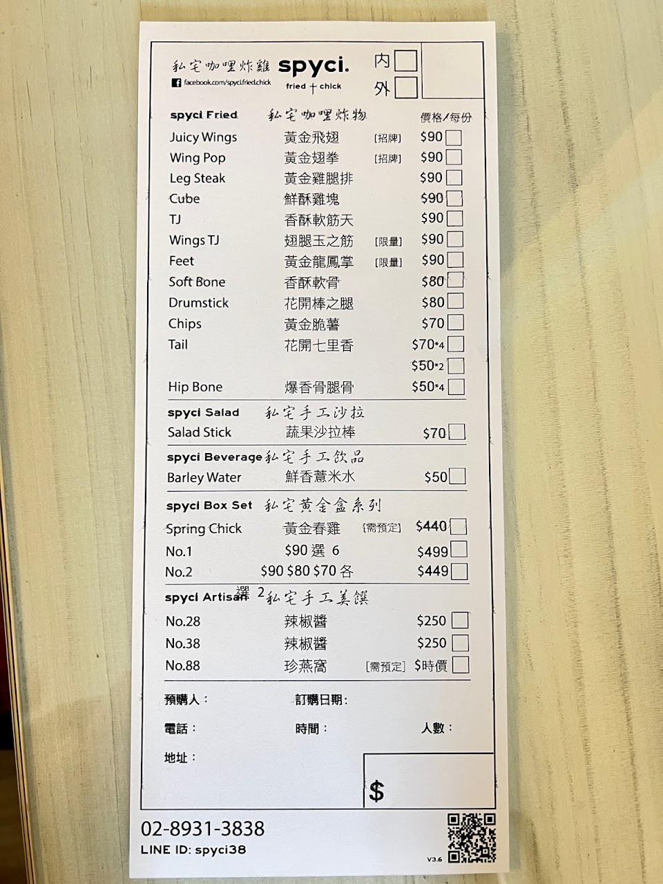 2024最新在地推薦餐廳的菜單_Spyci 私宅咖哩炸雞店的菜單、圖片