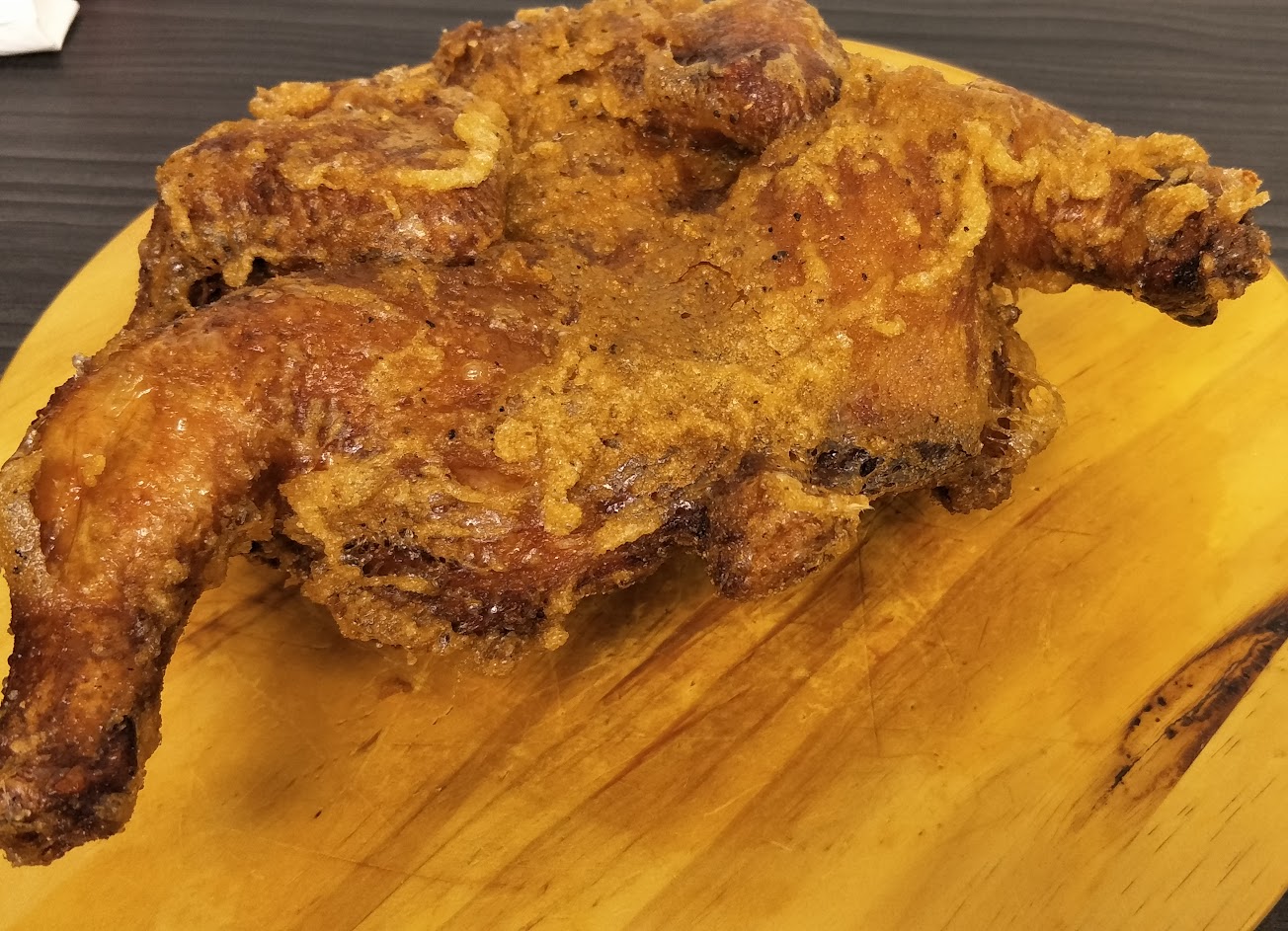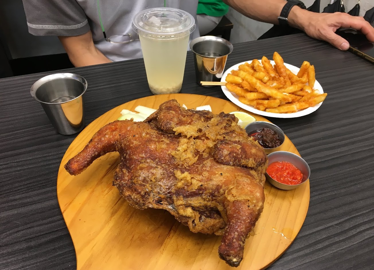 藏身小店面後的美味炸全雞,不說的話很難想像這是一家炸雞店,穿過店面櫃台與厨房,小小的坐位,要吃全雞的話還要先預約。口感酥脆多汁,微微咖哩香味滴上檸檬解解膩,滿足大口愛吃肉的人,不過適合二個人以上享用不然都是炸物還蠻油的,如果有個沙拉配會更好。抽風和地板的油膩感可以改善的話會更好
