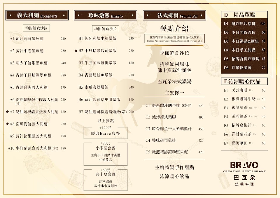 專賣義式和法式美食的休閒餐廳,主打義大利麵、燉飯和蝸牛料理。