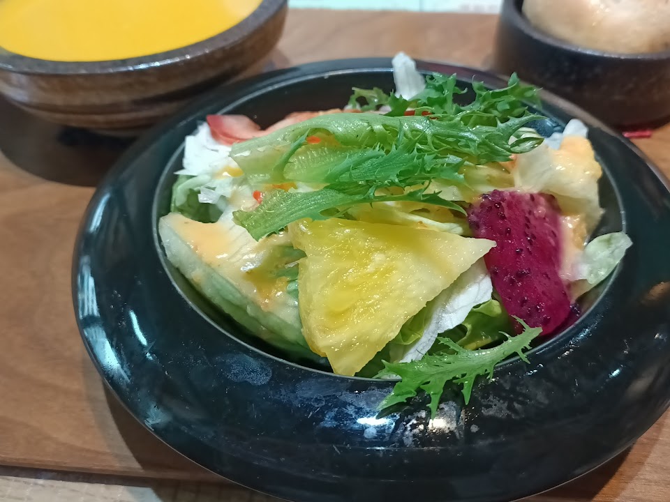 沙拉很好吃,每個食材都新鮮,吃得出廚師的用心~濃湯很濃郁美味,麵包有蒜內餡很香,主餐份量紮實也好吃,我喜歡五爪豬肋排的調味,吃多不會膩,但好撐……
