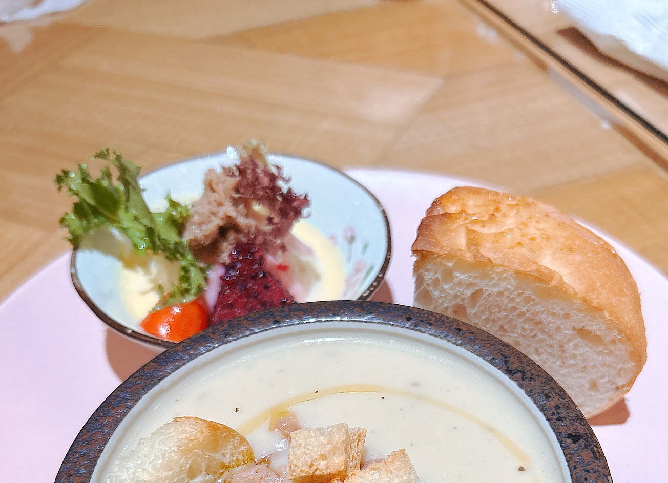 開胃小菜、麵包及湯品很有飽足感