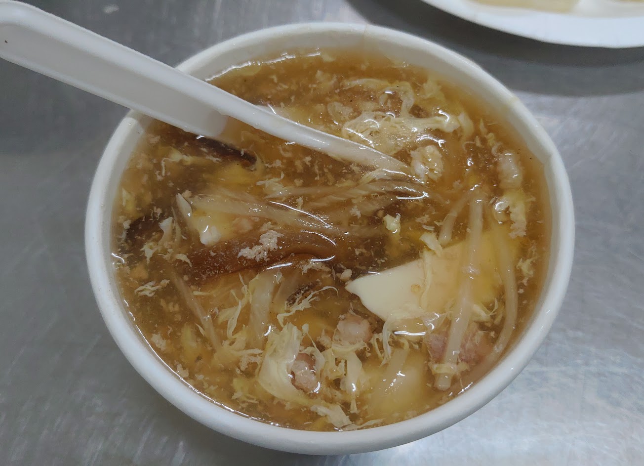 酸辣湯不太酸辣份量也不多,反而比較像羹湯的感覺,只有微微的酸度,但是湯底是用高湯製作的,也是好喝(不當成酸辣湯的話)