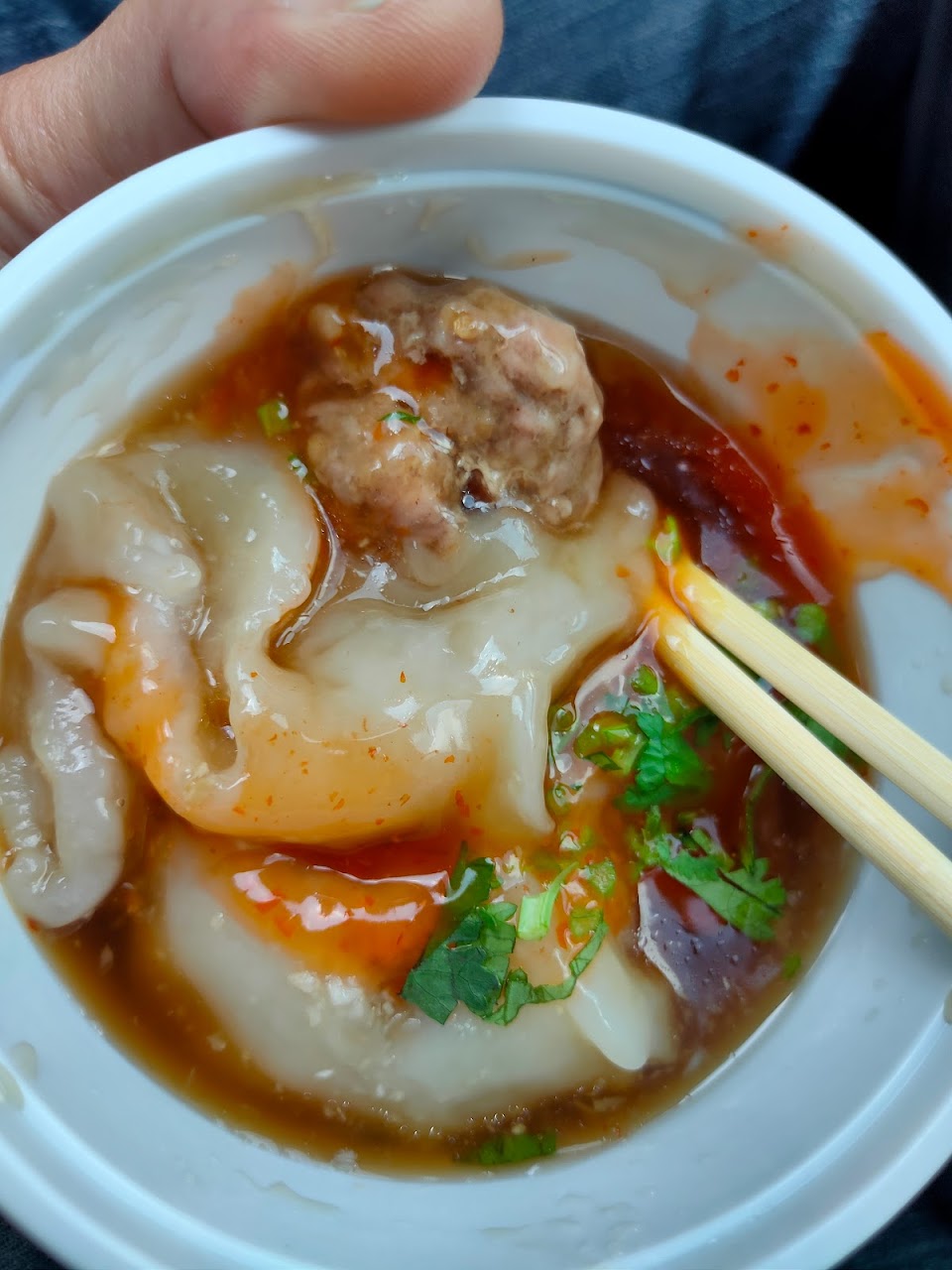 好吃,皮也沒有過多粉味,肉又紮實,調味不錯,放香菜很搭