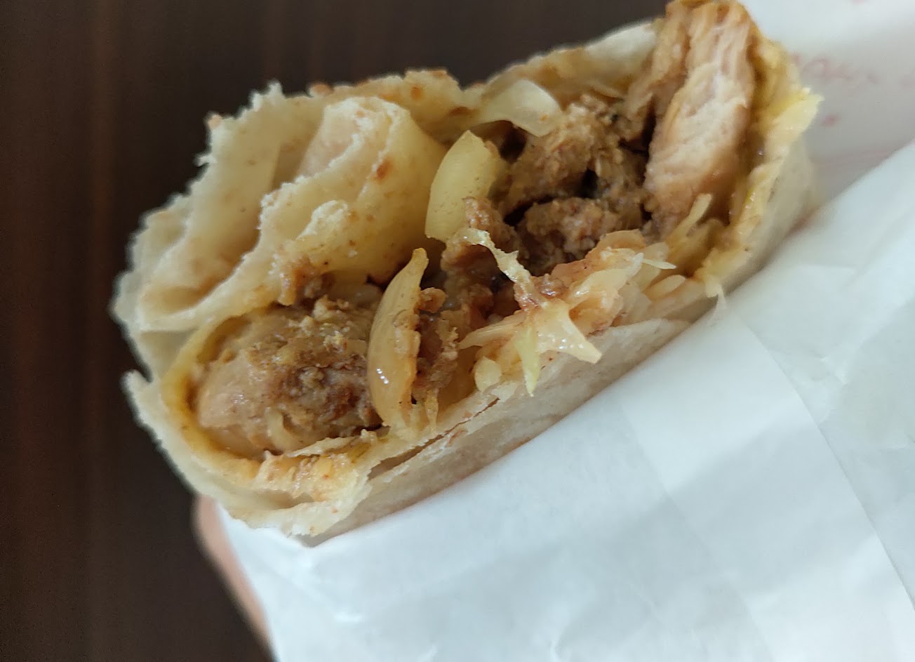 牛肉捲餅重口味,加洋蔥不加價,吃過市區其他異國捲餅,價格差不多,但只有這間大捲又料多,cp值高,個人習慣配茶喝,不然有點膩口? …