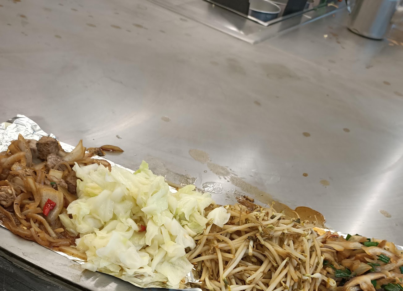 點餐會附高麗菜和豆芽菜,吃起來很划算,不過上次去有點被煙燻到眼睛蠻不舒服的,很多人點外帶