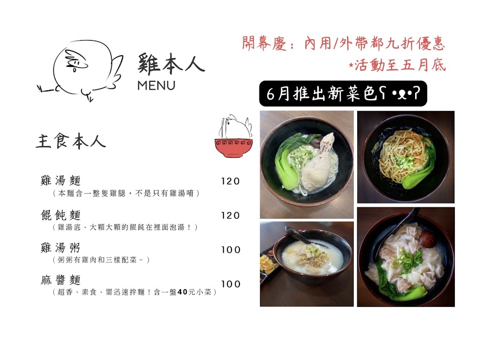 2024最新在地推薦餐廳的菜單_雞本人麵食館的菜單、圖片