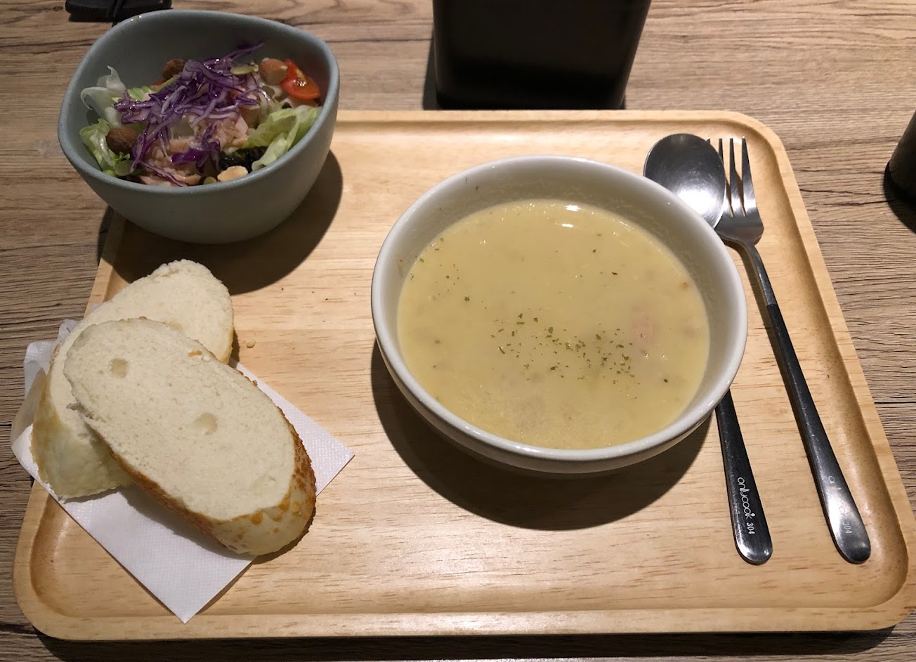 剛上桌就是最基本的沙拉、湯、麵包