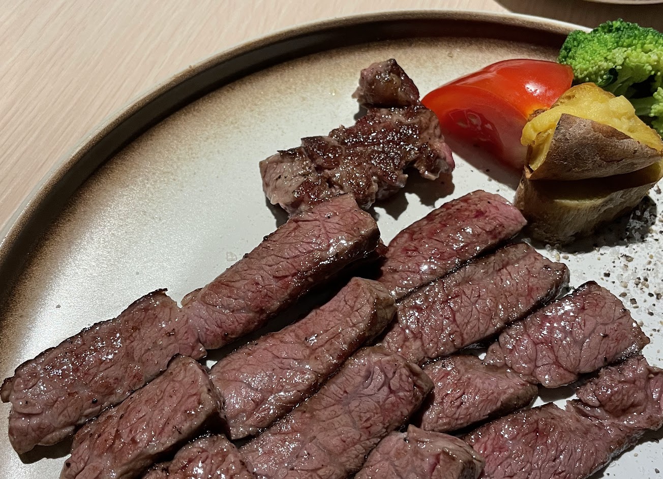 這次是吃 紐西蘭菲力 套餐(五分熟) 美國1855安格斯翼板牛 套餐(五分熟) ⭐️前菜 洋蔥濃湯:濃郁、味道很棒 水果生菜沙拉:橘子、火龍果、蘋果,很清爽 麵包:有點像是雜糧麵包 ⭐️主餐肉的品質很好,是現切的肉,口感不錯 主餐有附半條地瓜、杏鮑菇、玉米筍、甜豆 ⭐️櫻花蝦炒飯 炒飯粒粒分明,櫻花蝦香氣很夠,有飽足感 ⭐️甜湯 紫米紅豆湯,紅豆口感適中,不會太硬太軟,是個很好的Ending ⭐️茶水 熱茶,喝起來很清爽,冬天有熱茶很加分,主廚也會詢問還需不需要再來一杯