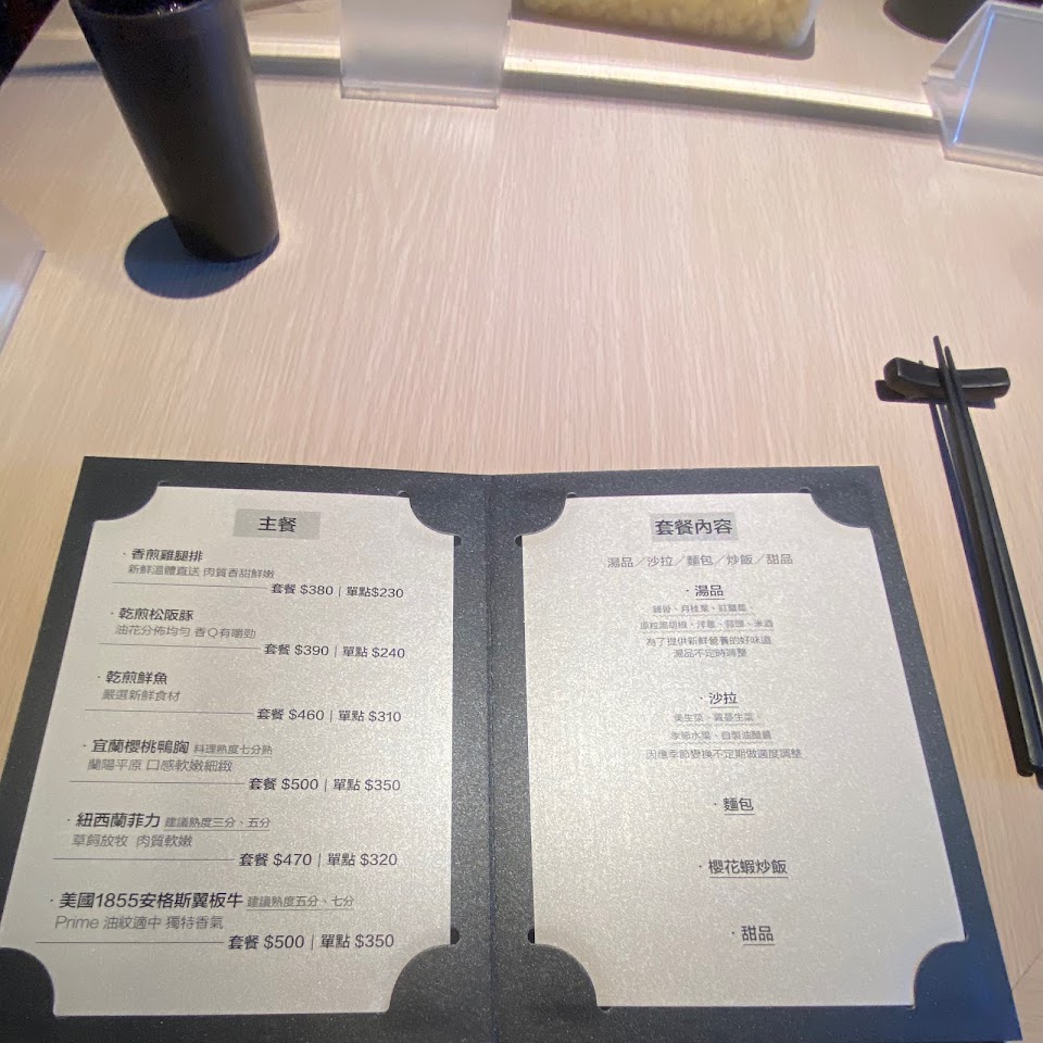 用餐前精闢的解說,老闆不疾不徐的看客人的用餐速度上菜無縫接軌技術優質,餐點全部吃完很有飽足感,菲力五分好吃口感優!