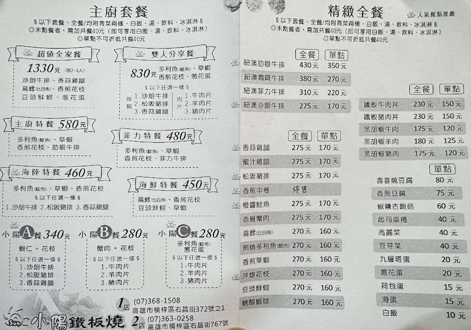 2024最新在地推薦餐廳的菜單_小陽鐵板燒的菜單、圖片