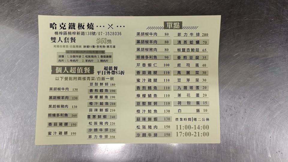 2024最新在地推薦餐廳的菜單_哈克鐵板燒的菜單、圖片