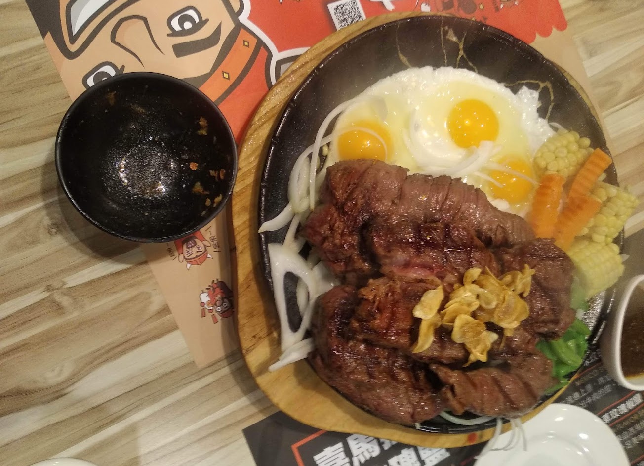 唯一優點:豬排的肉不錯。 以下是當天吃飯心得:最不能忍受的是結帳時,店員收了錢之後還在我面前用手挖耳朵,挖完還看一下手,然後才找錢給我。整個就是大扣分不及格啊! 醬汁太少、玉米濃湯太稀(玉米粒都超稀少)、湯匙一拿出來都是白白的水痕跡、店員拖地都是濃濃香香的香味(真不知道要吃牛排還是吃香精)、烤水果還有過熟裂開的、店員在擦拭乾淨的牛排刀時 還掉到椅子上 結果只是拿起來繼續擦(同一條抹布啊)。 — 雖然身邊許多親朋好友,吃過都不推薦,等到我自己親身感受到,真的有許多,員工衛生教育有待加強。