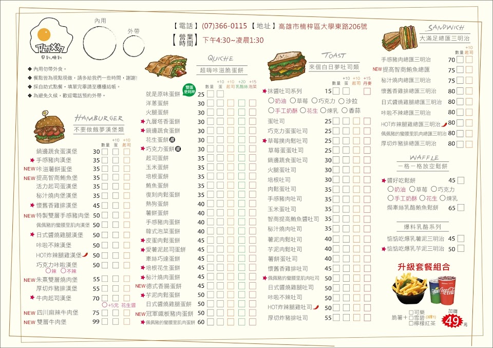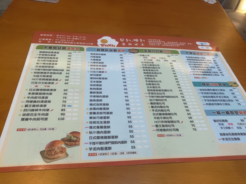 2024最新在地推薦餐廳的菜單_早到晚到楠梓店的菜單、圖片