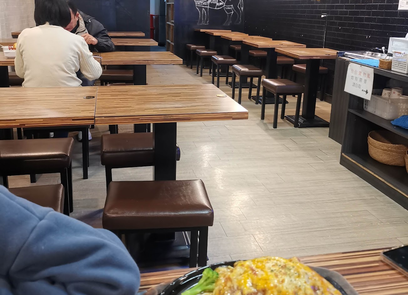 價位與品質升了一階的平價排餐館,內用環境一般,起司豬排肉質軟嫩濃郁美味,雞腿排皮脆多汁,店員說可以免費加麵,但份量就算不加麵也吃得夠飽。