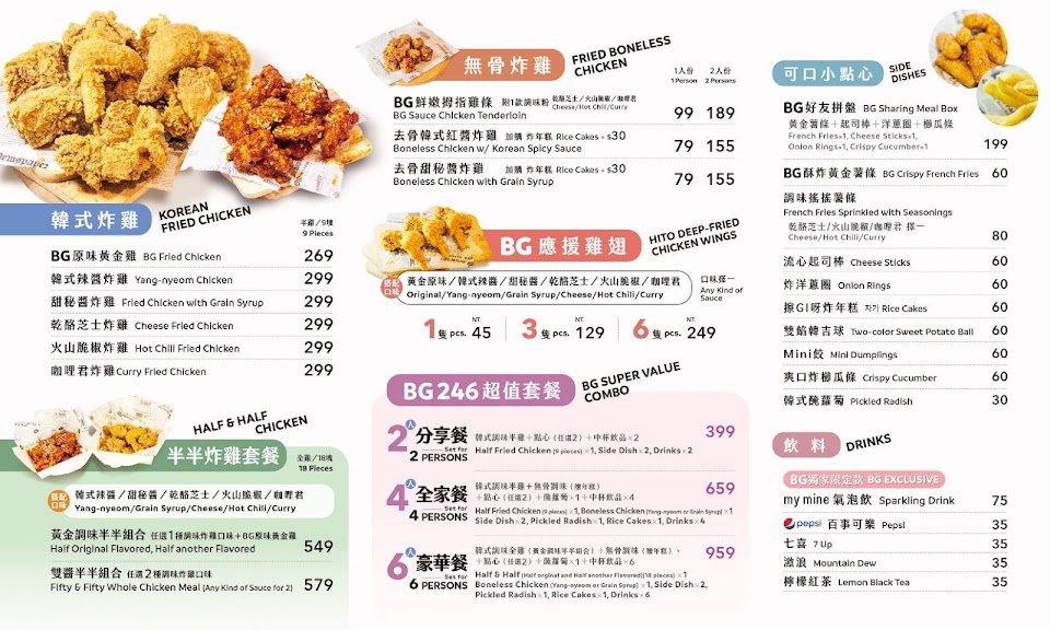 2024最新在地推薦餐廳的菜單_BG韓式炸雞-楠梓德賢店的菜單、圖片