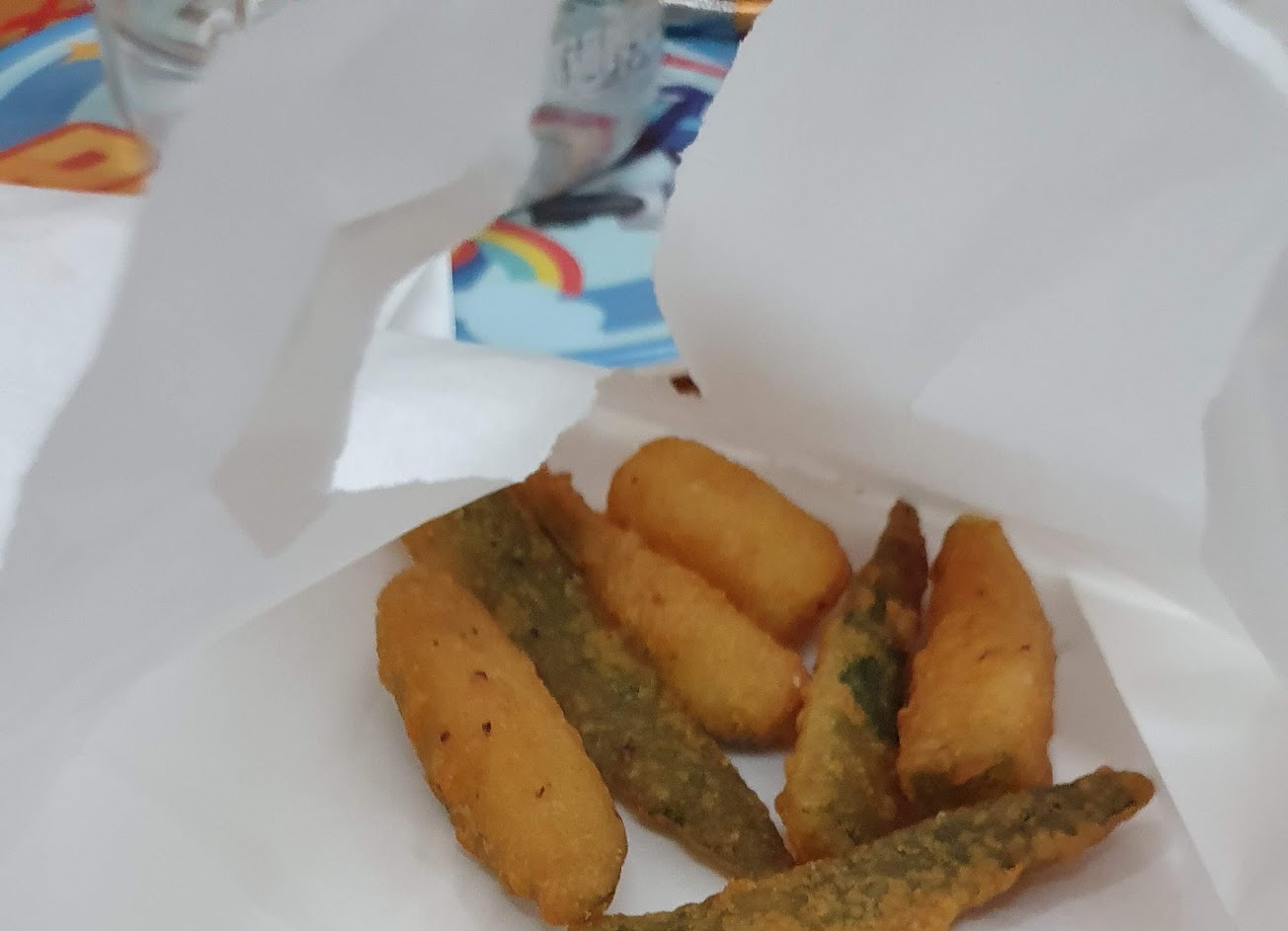 炸雞好吃,但汽水沒氣,咖哩餃沒咖哩味,可惜了。