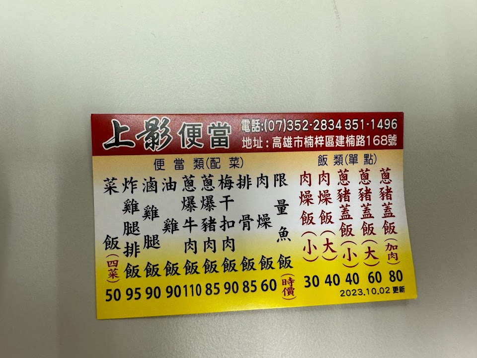 2024最新在地推薦餐廳的菜單_上影便當的菜單、圖片