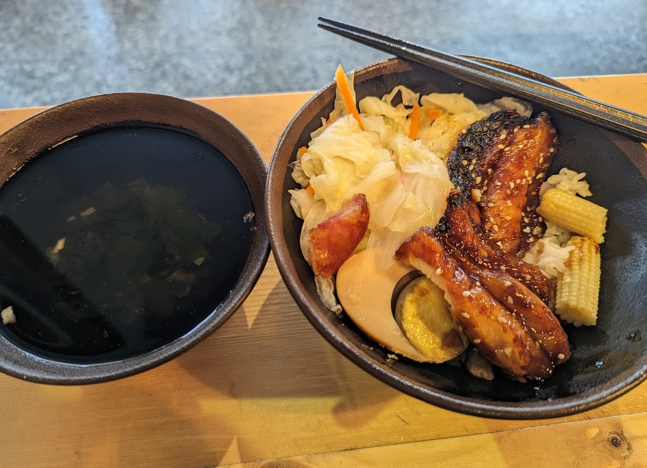 點了大雞排飯和蒲燒鯛說實在滿普的⋯雞排有點柴⋯配菜也有點少樣感覺不怎麼值這樣的價錢