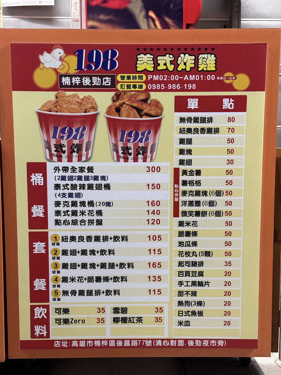 2024最新在地推薦餐廳的菜單_198美式炸雞_楠梓後勁店的菜單、圖片