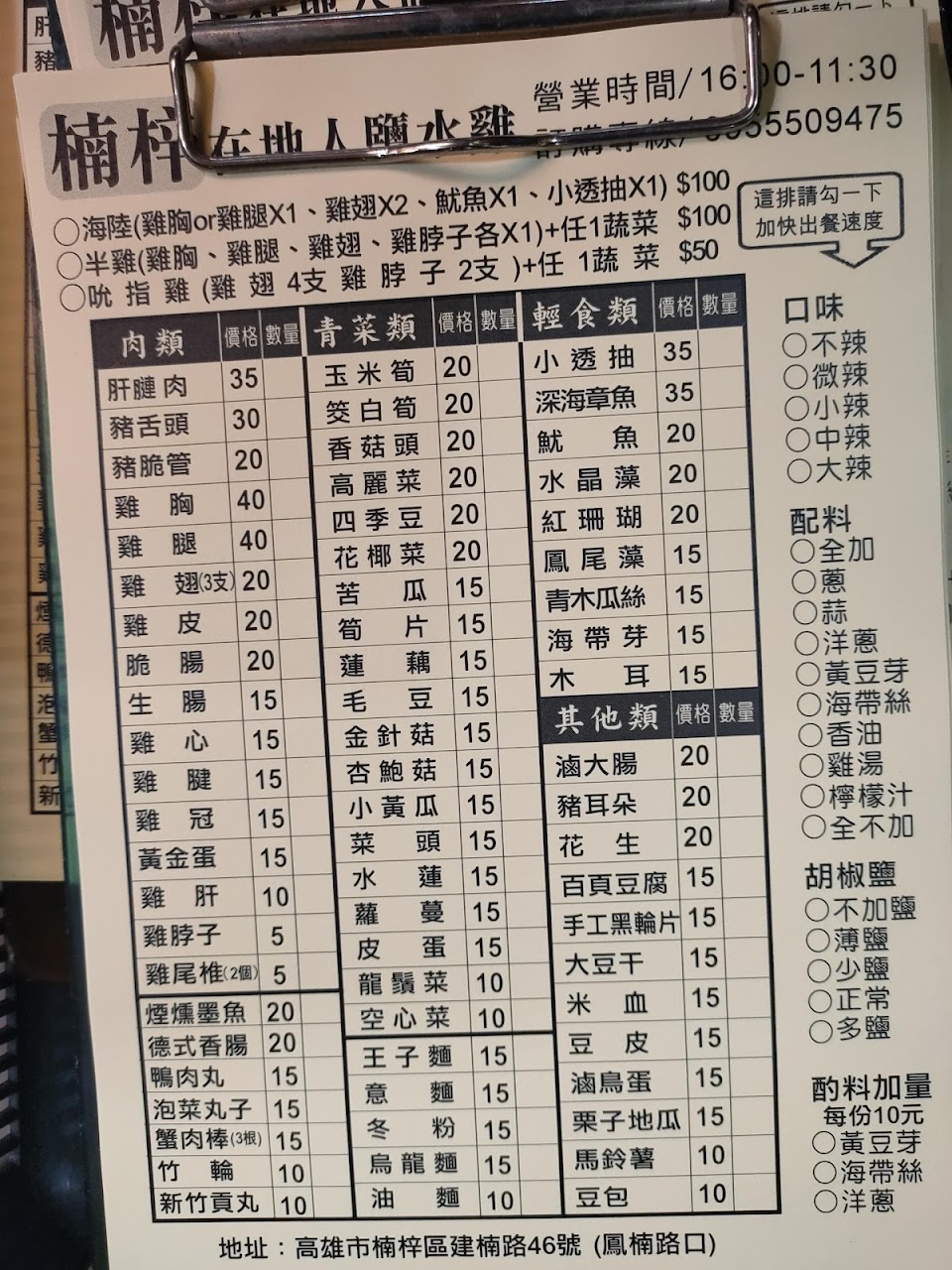 2024最新在地推薦餐廳的菜單_楠梓在地人塩水雞的菜單、圖片