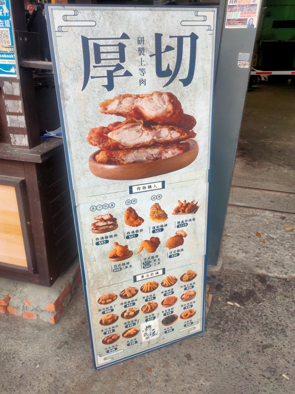 雖然只是個小攤子,但是炸出來的雞排卻是意外的鮮嫩多汁,脆皮雞排的表層不會死硬,一口咬下去,被封住的肉汁流瀉出來,一點也不乾柴,開張並沒多久,位於楠梓警察分局隔壁,看起來不起眼,旁邊也有相似產品,但是這一家的生意就是凌駕其他家,不愧是炸魂職人,其他炸物也都可圈可點,除了香嫩外,並不油膩,表皮不油偏乾略脆,喜歡吃雞排的會是個好選擇,而且臉蛋大的雞排厚實,胃口小的和親朋好友合吃會是正確選擇,省點胃吃其他好料炸物喔。現點現炸,所以慢工出細活,好吃好料就是要有耐心等待喔!一塊好吃雞排要十分鐘才能炸好!雞腿則要十五分鐘喔!