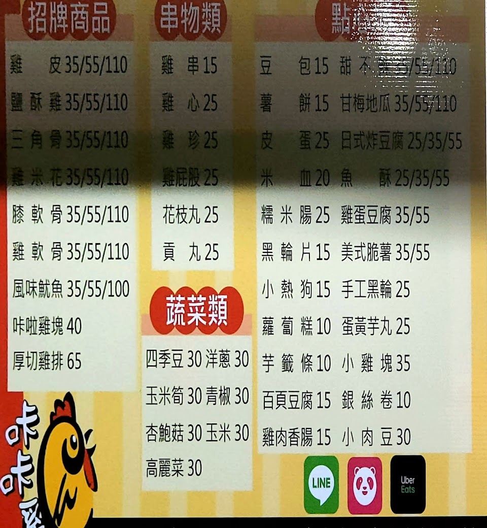 2024最新在地推薦餐廳的菜單_咔咔雞 後勁夜市店 鹹酥雞 專業炸物的菜單、圖片