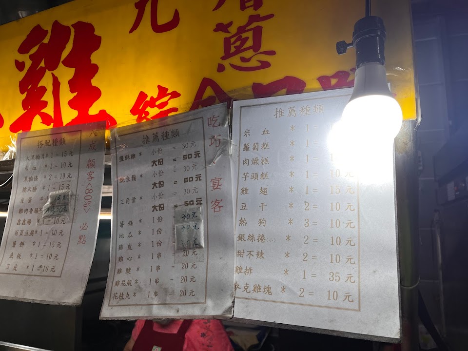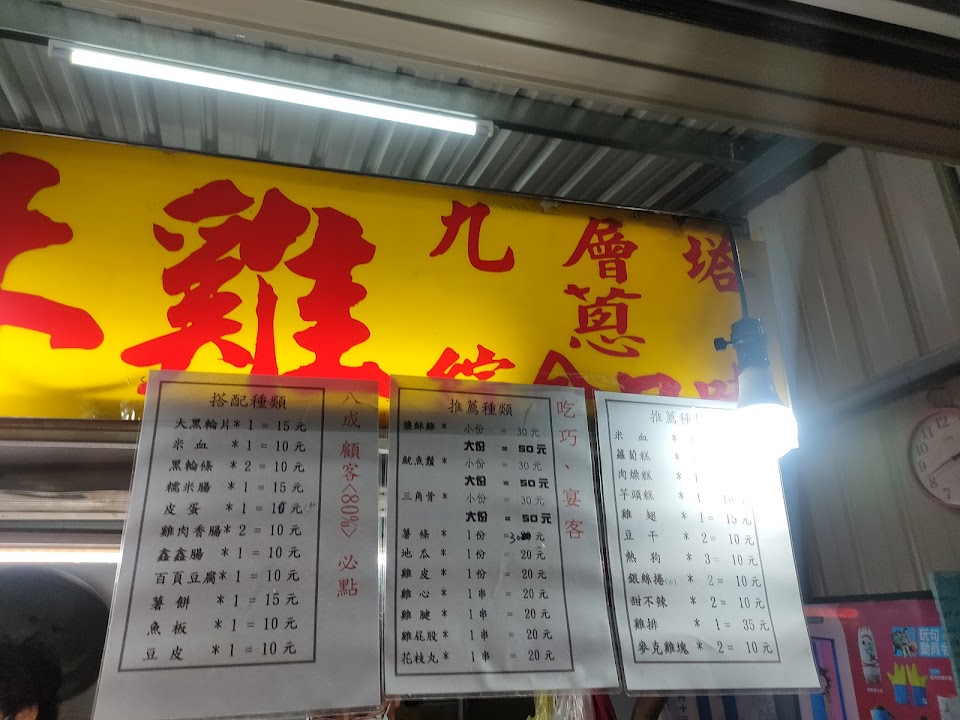 小小一攤有多種選擇,米血是軟的非常好入口,鹹酥雞口味不錯,肉質也滿嫩的,魷魚稍硬點,九層塔、青蔥、蒜給的不少,整體來說還不錯,價錢算是比較便宜的,老闆娘就像鄰居媽媽一樣很有親和力。