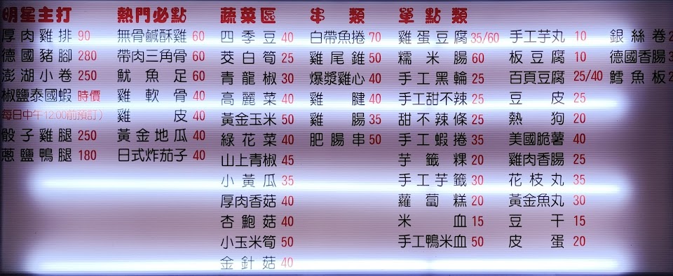 雖然我覺得價格偏貴一點點,但還在可以接受的範圍內,不過我真的覺得超級好吃,完全對得起他的價格,而且洋蔥或大蒜都給得很大方,超級喜歡炸雞蛋豆腐和炸皮蛋,味道有夠香配上大蒜,配炸物我可以多吃兩碗飯,整個環境跟檯面也都很整潔不會到處油膩膩ㄉ總之超級喜歡,以後宵夜應該都在這裡買哈哈哈