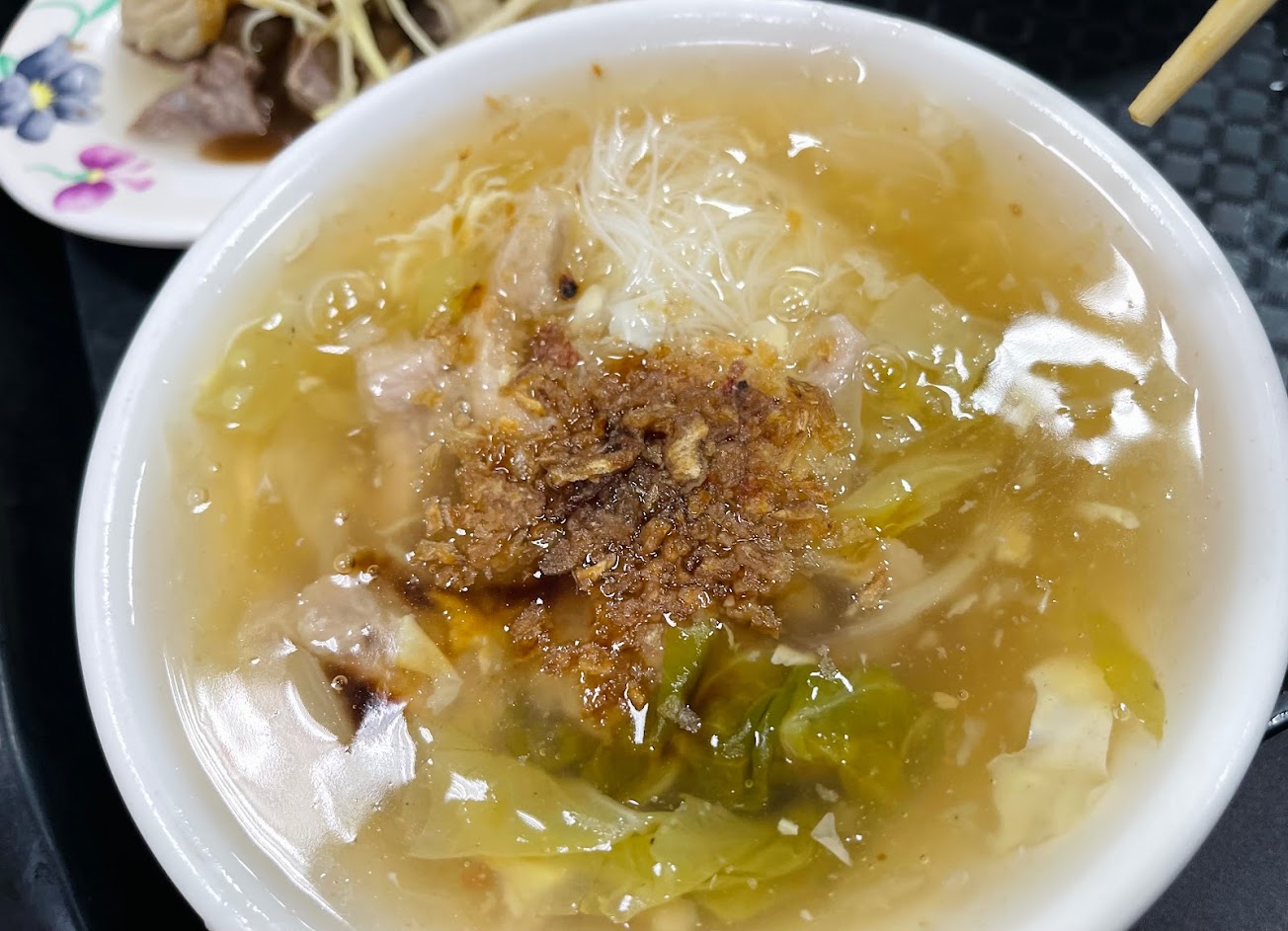 手切肉燥飯鹹香不油膩 ,湯頭的湯大骨湯底非常清爽, 一喝就知道是真材實料熬出來的。