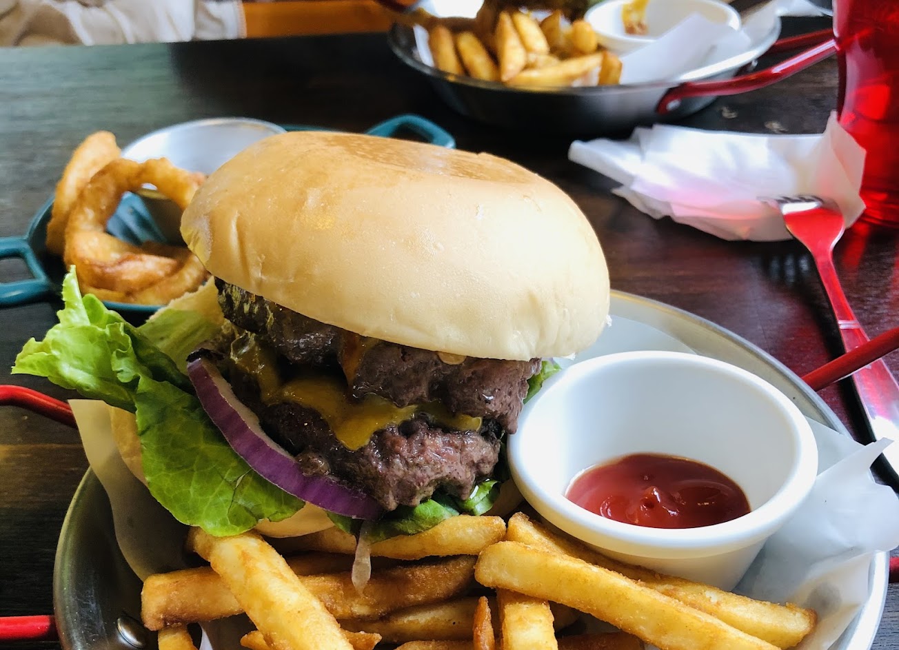 很有氣氛的美式餐廳,漢堡很好吃!(而且很飽)外加洋蔥圈、奶昔、果昔都很好喝!?? …