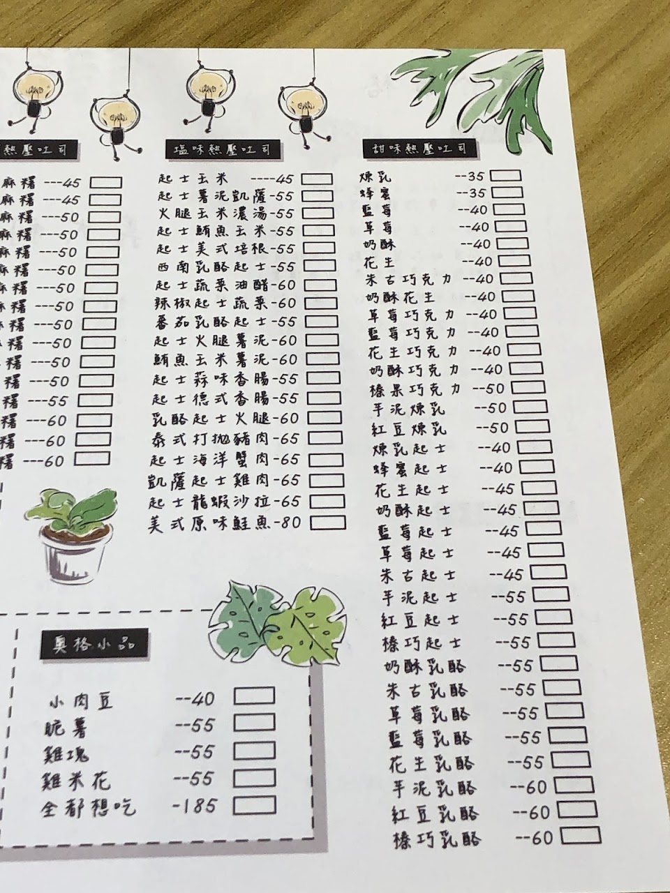 綠意盎然的小店 服務 外帶 餐點類型 早午餐
