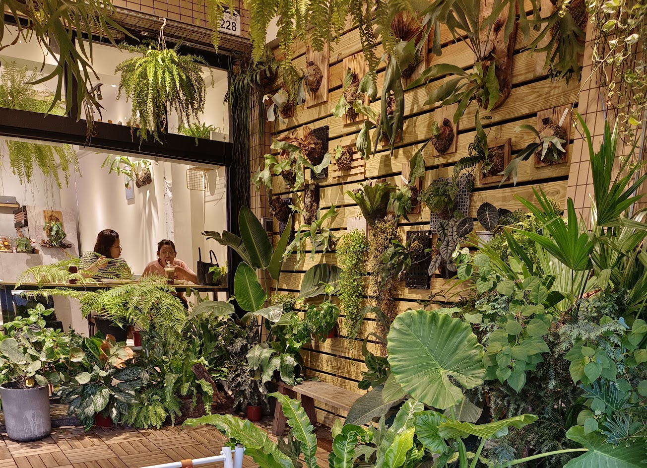 位在省道旁邊的小店 店內店外佈置有大量蕨類及觀葉植物