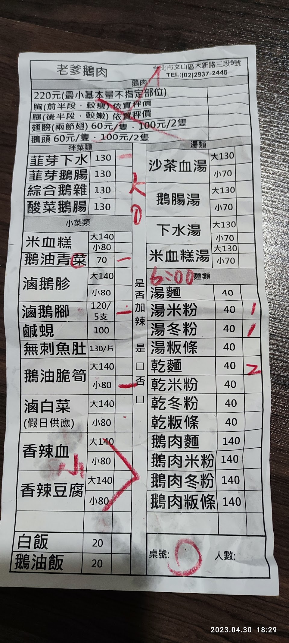 2024最新在地推薦餐廳的菜單_木柵老爹鵝肉專賣店的菜單、圖片