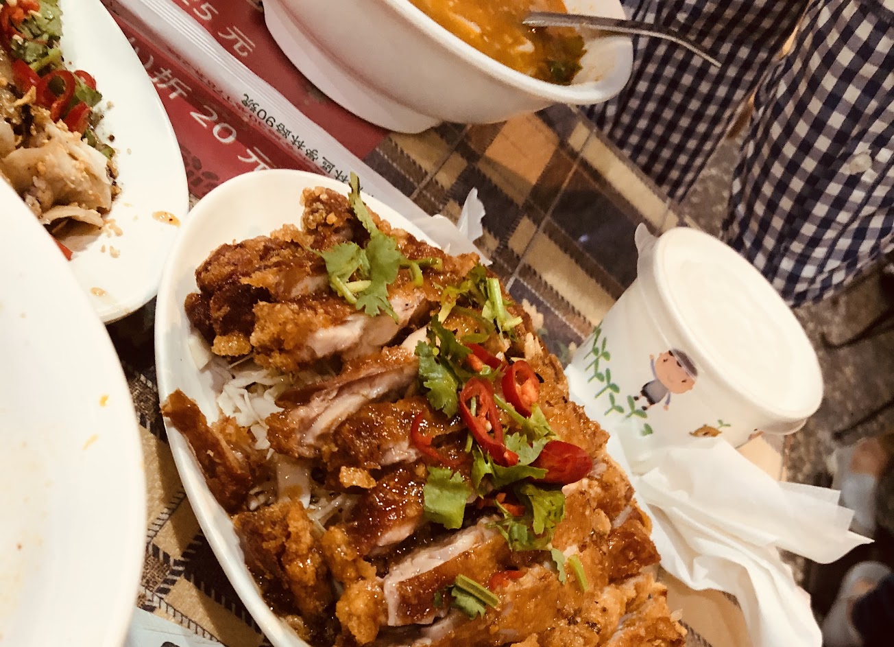 政大側門的美食餐廳,高CP值,每次來都會點外酥內嫩多汁的椒麻雞,還有過橋米線,它的湯底是用母雞和火腿熬的高湯,真的好喝。此外,叉燒麵是乾拌麵有叉燒肉絲,吃起來像泡麵的味道喔!再則是大薄片,豬頭皮切成薄片,吃起來脆脆的、酸辣夠味。
